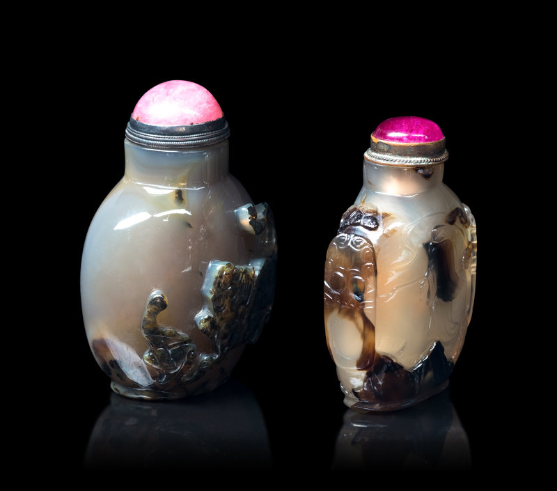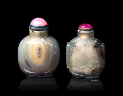清十九世紀 巧雕瑪瑙鼻煙壺兩件