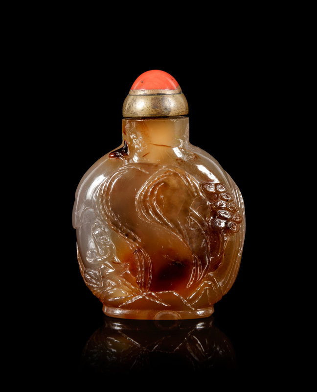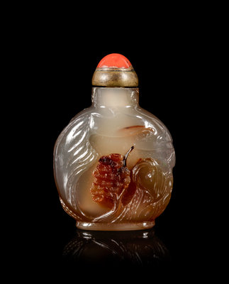 清十九世紀 瑪瑙雕靈猴山水紋鼻煙壺