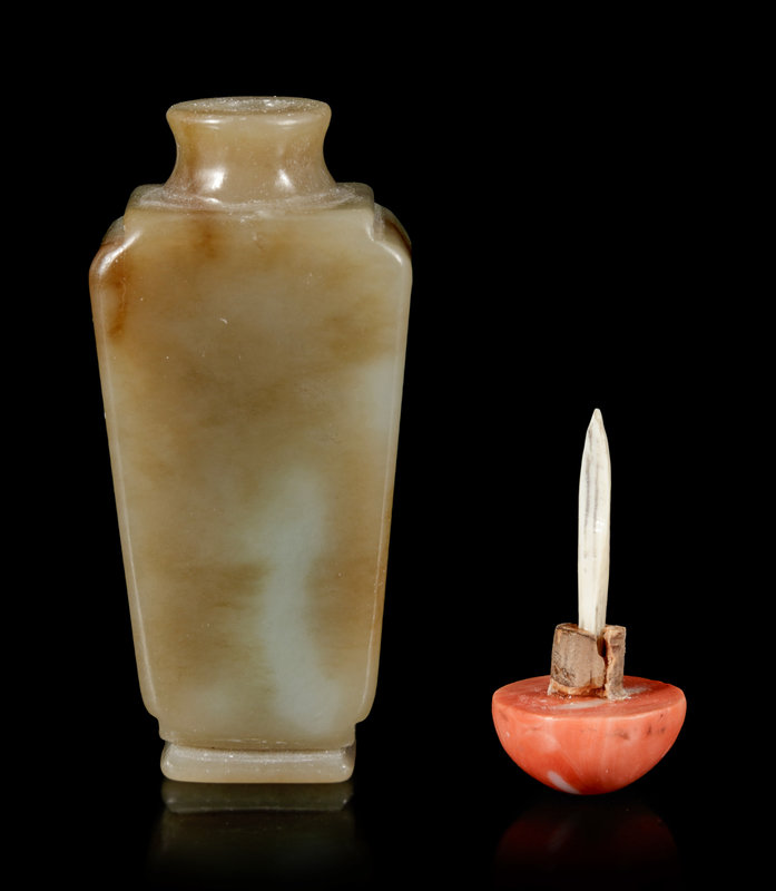 A Russet and Celadon Jade Snuff Bottle