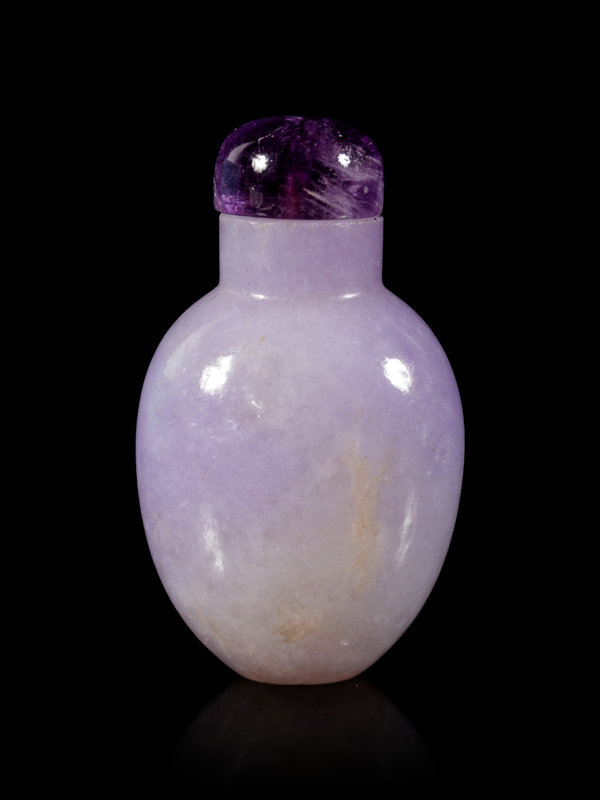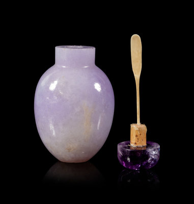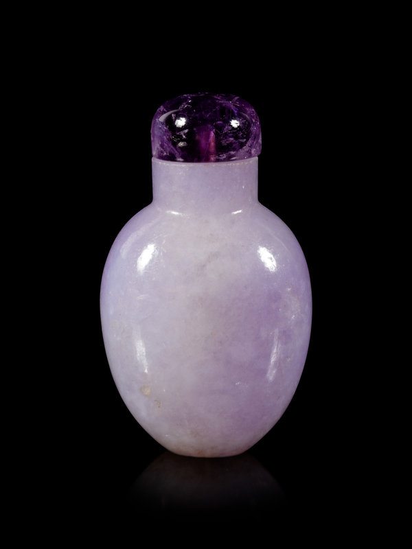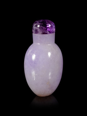 the body of tapering ovoid form and stone of an icy lavender tone, with an amethyst stopper.