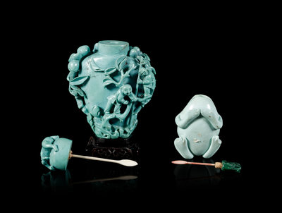 近代 綠松石雕鼻煙壺兩件