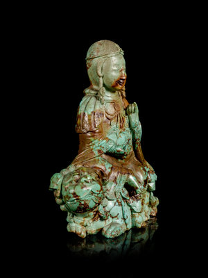 A Carved Turquoise Figure of Bodhisattva Manjushri