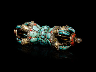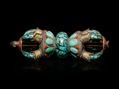 A Tibetan Turquoise and Coral Vajra