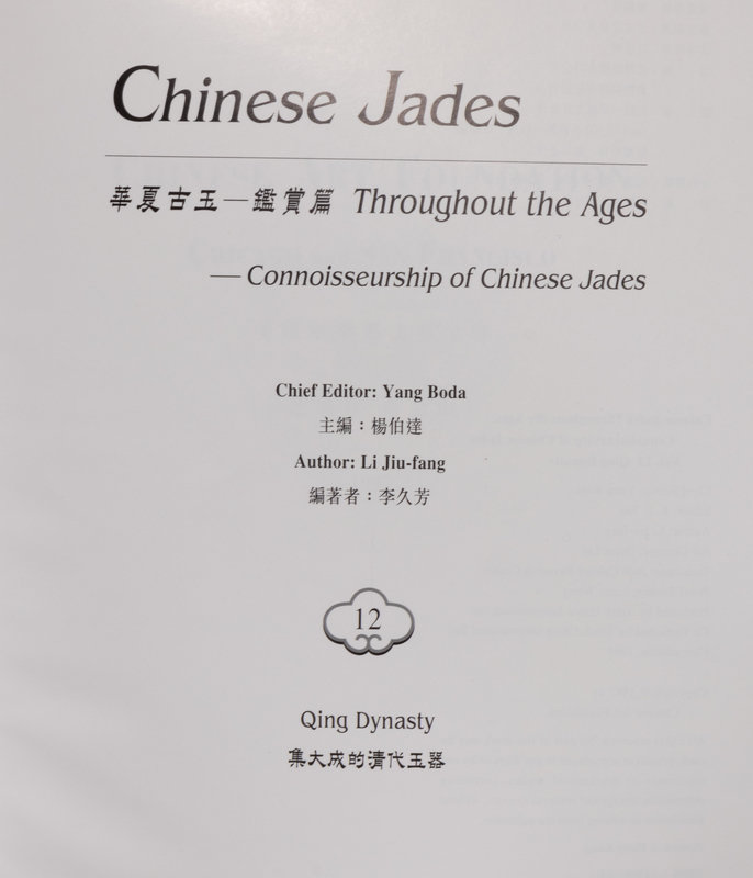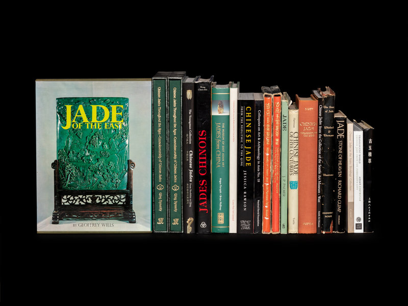 WILLS, Geoffrey. Jade of the East. Trumbull, 1972.—Chinese Jades Throughout the Ages. Connoisseurship of Chinese Jades (Qing Dynasty Volumes 11-12). Hong Kong, 1996-1997.—The Youngman Collection. Chinese Jades. Neolithic to Qing. Chicago, 2008.—WANG Chen-chiu, Jades Chinois. Gennevilliers, 1994.—The Museum of East Asian Art. Jades from China. Bath, 1994.—Chinese Jades from Kirk Norton Collection. Hong Kong, 1995.—Masterworks of Chinese Jade in the National Palace Museum & Supplement. Taipei, 1969.—PALMER, J.P. Jade. London, 1967. HARTMAN, Joan M. Chinese Jade of Five Centuries. London, 1969.—Chinese Jades in the Collection of the Seattle Art Museum, 1998.—NOTT, Stanley. Chinese Jade throughout the Ages. Rutland & Tokyo, 1970.—WHITLOCK, Herbert P. & EHRMANN, Martin L. The Story of Jade. New York, 1949..—GUMP, Richard. Jade: Stone of Heaven. Garden City, 1962.—Chinese Jades in the Avery Brundage Collection. San Francisco, 1977.—LIU Yang. Translucent World. Chinese Jade in the Forbidden City. Sydney, 2007.—Gu yu jing cui. Shanghai, 1987. Together 20 works.