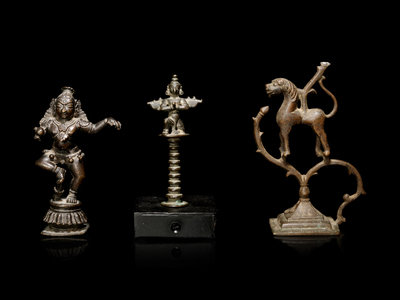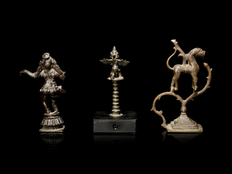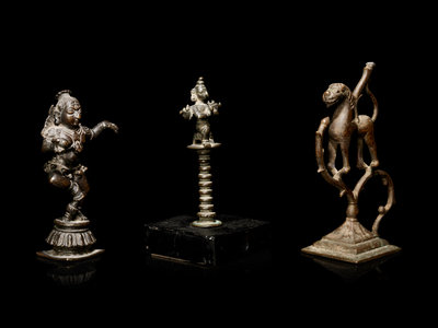 comprising a figure of Dancing Krishna, a finial of Garuda, and a horse-form ornament.