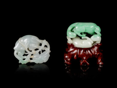 Two Apple Green and White Jadeite 'Double Badgers' Carvings