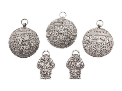 清晚期 銀製掛飾五件