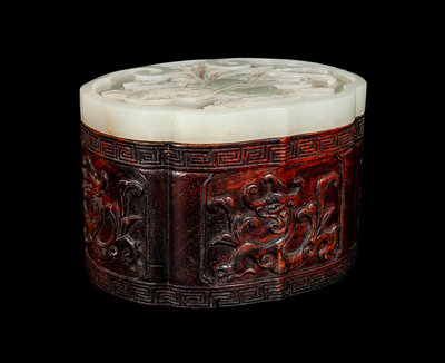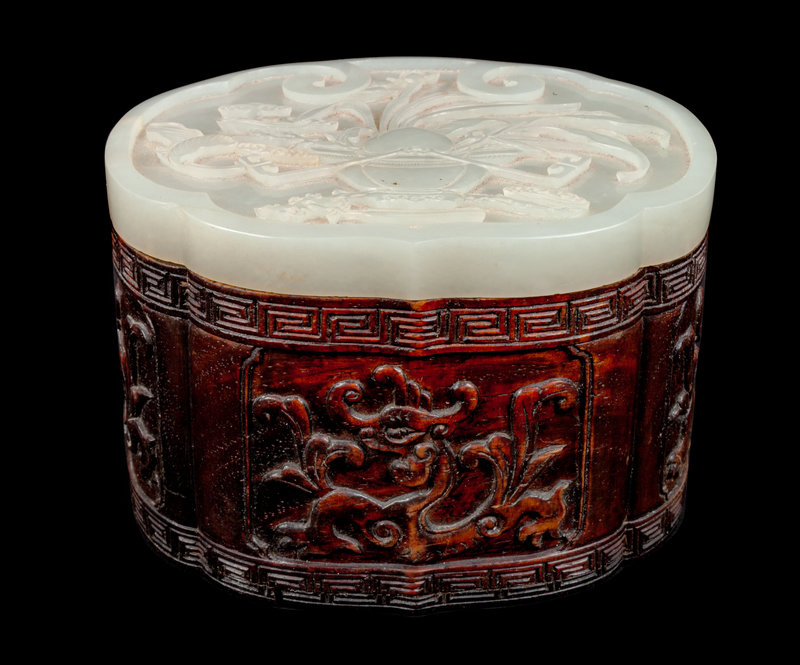 A White Jade and Rosewood Covered Box