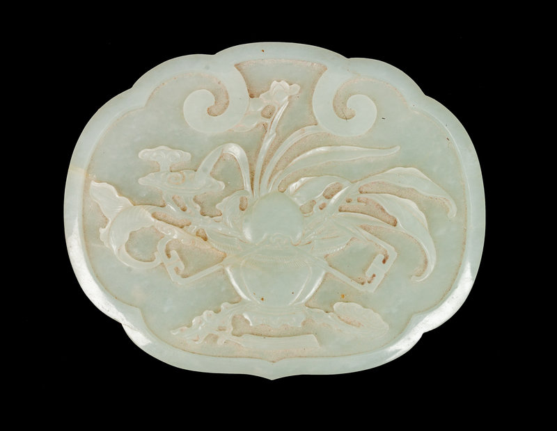 清晚期 鑲白玉如意頭形蓋盒