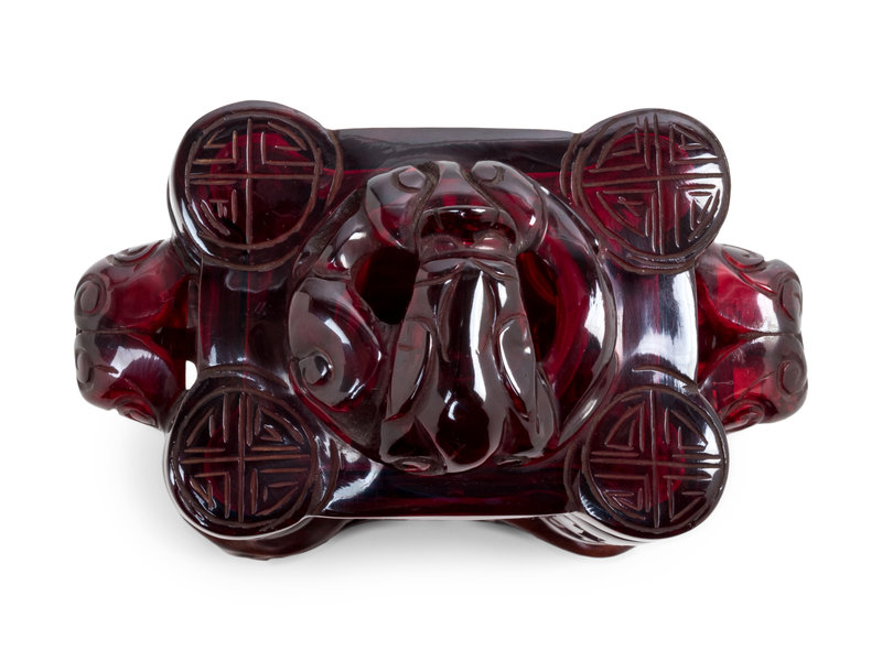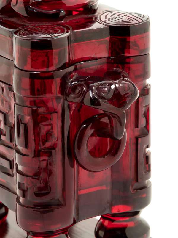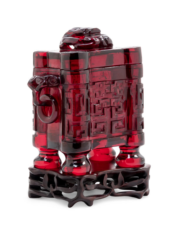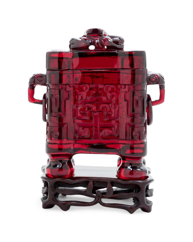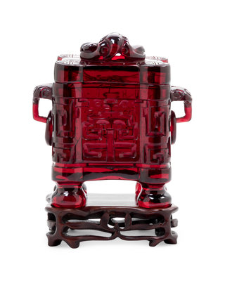A Transparent Ruby-Red Plastic Imitating Glass Archaistic Incense Burner and Cover, Tulu