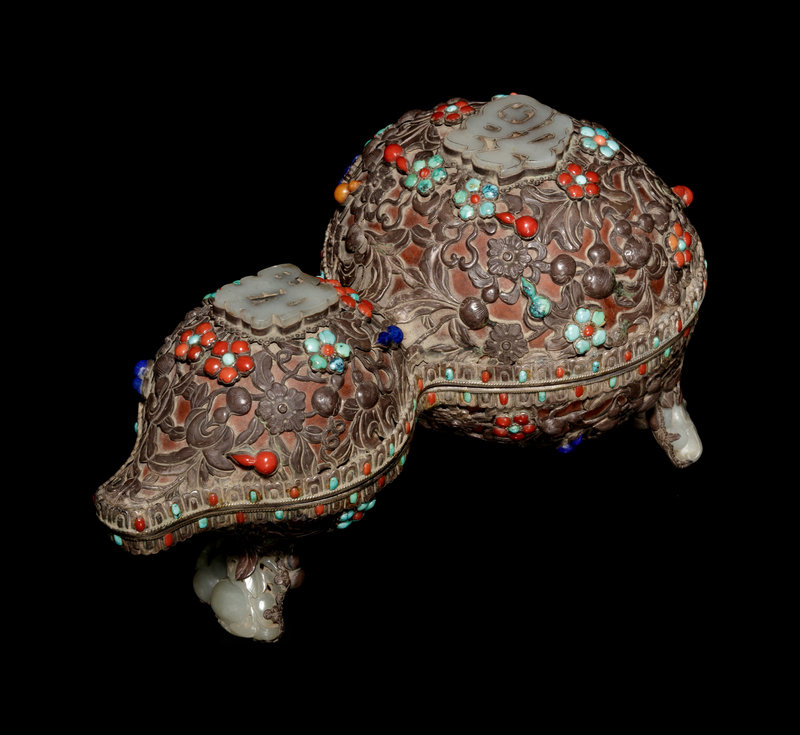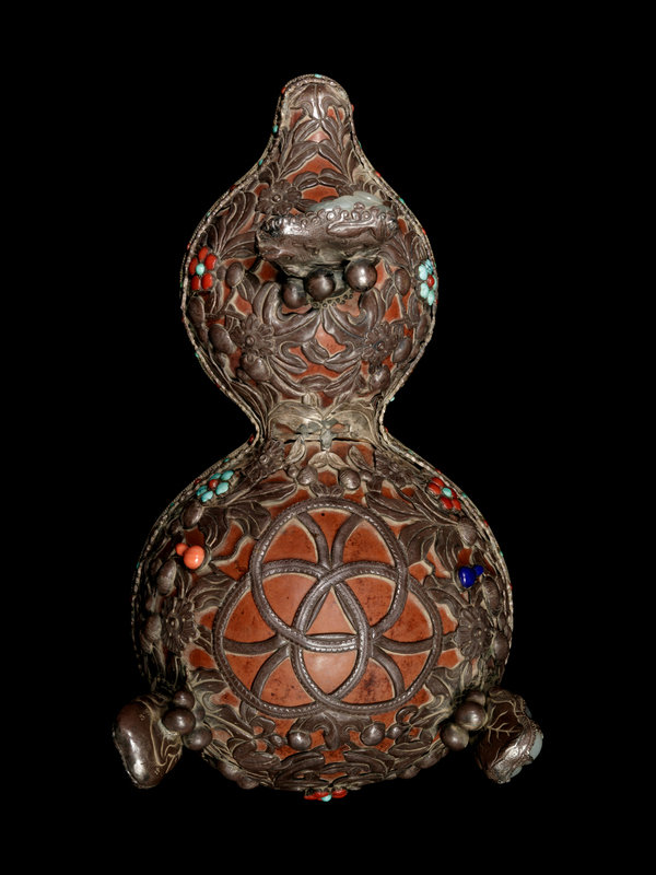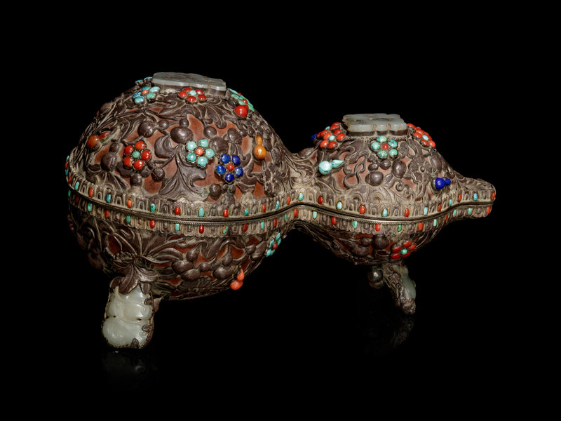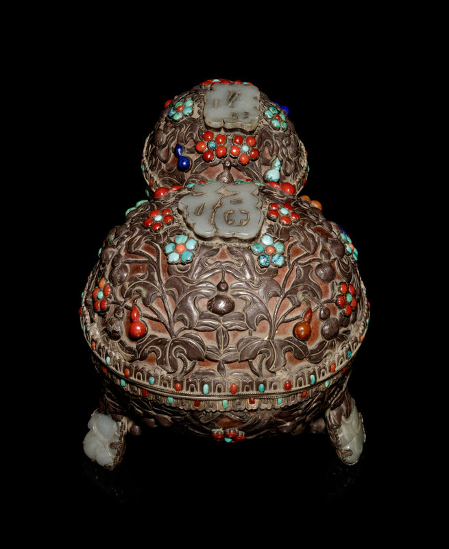 清晚期 葫蘆鑲銀嵌寶福祿壽蓋盒
