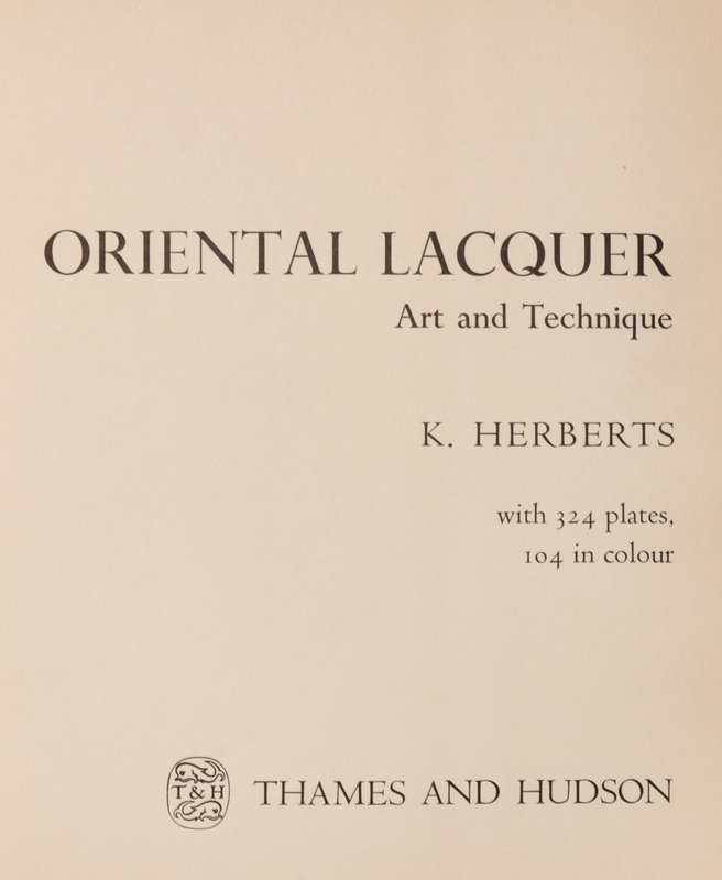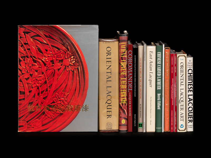 Gugong bowuyuan cang diaoqi. Beijing, 1985.—HERBERTS, K. Oriental Lacquer. New York, 1963.—Zhongguo gudai qiqi. (Ancient Chinese Lacquerware). 1987.—KESSEL, W. de. Coromandel Lacquer Screens. Chicago, 2002.—An Important Collection of Chinese, Korean, and Ryukyuan Lacquers. Michael Hughes, LLC. New York, 2002.—Chinese Lacquer. Bluett & Sons. London, 1999.—East Asian Lacquer. The Florence and Herbert Irving Collection. Metropolitan Museum of Art. 2002.—CLIFFORD, Derek. Chinese Carved Lacquer. London, 1992.—Ben Jassens Oriental Art. (Lacquer).—Masterpieces of Carved Lacquer Ware in the National Palace Museum. Taipei, 1971.—LEE, Yu-Kuan, Oriental Lacquer Art. New York, 1972.—Important Chinese Lacquer the Lee Family Collection. Parts I-II. Christie's Hong Kong, 2009. Together 15 single volume works.