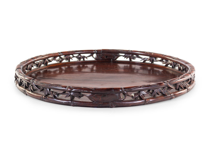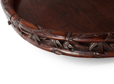 the circular panel surmounted by reticulated sides with carved bamboo leaves, between two borders in the shape of bamboo stems.