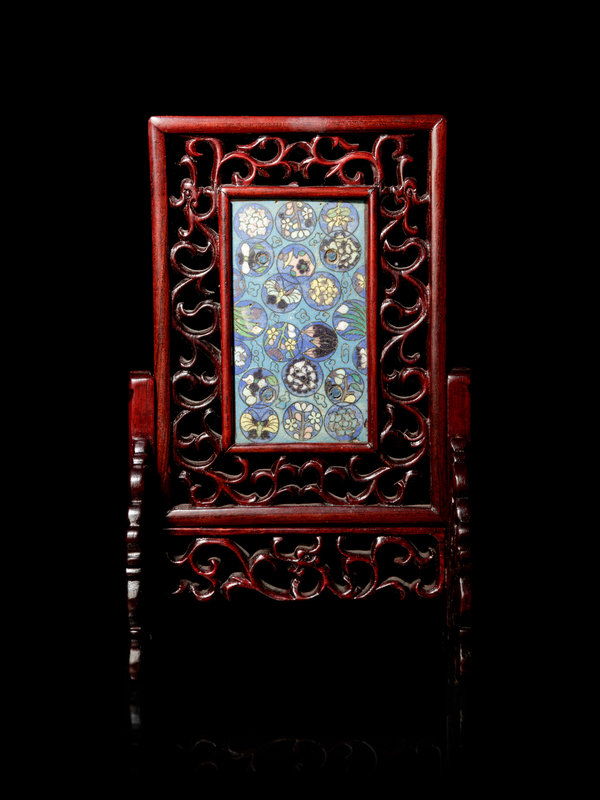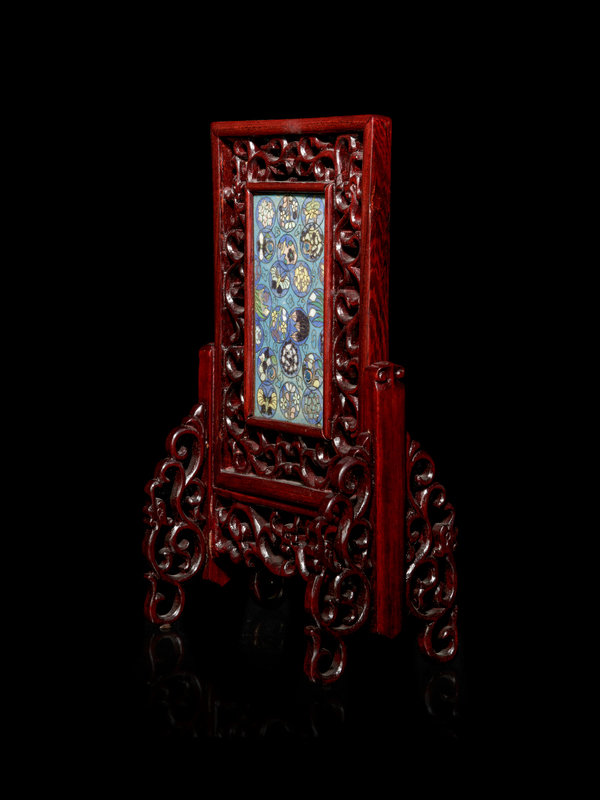 A Small Cloisonné Enamel Inset Rosewood Table Screen