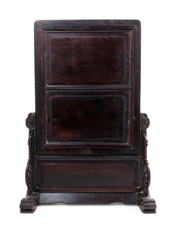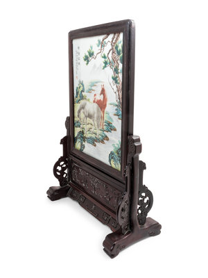 A Famille Rose Porcelain Inset Hongmu Table Screen