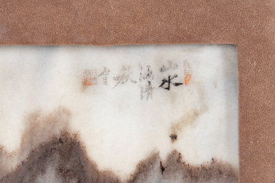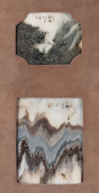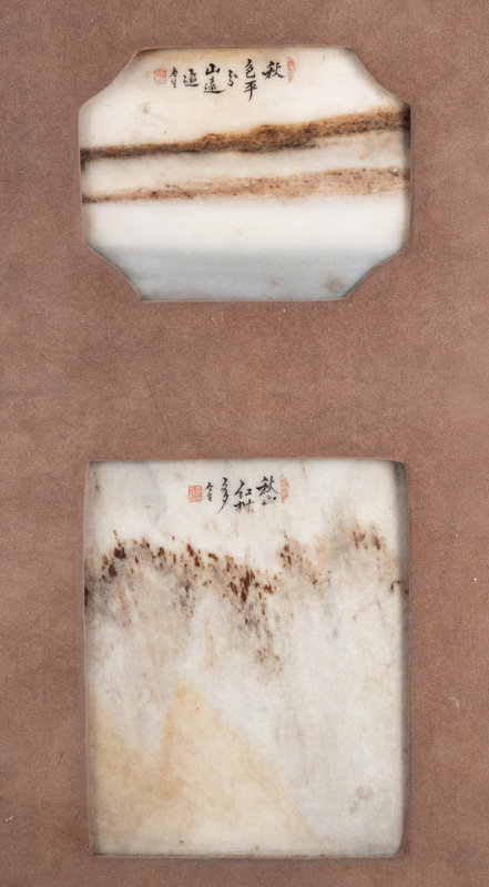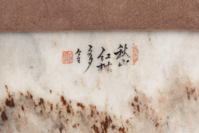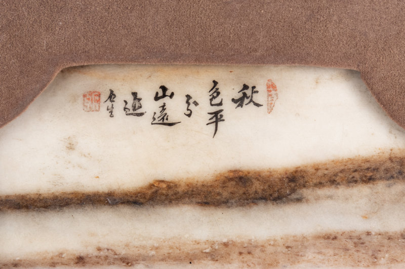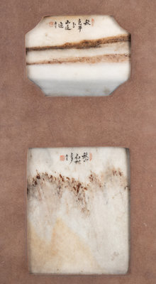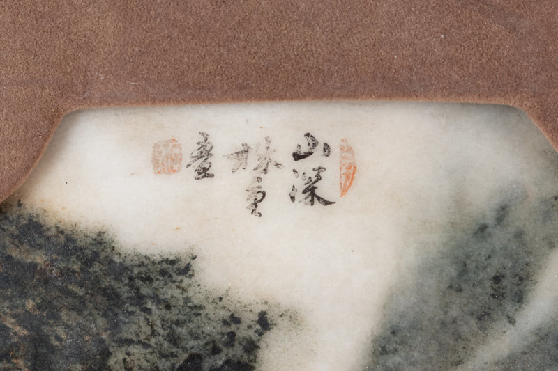 清十九世紀 嵌大理石掛屏一對