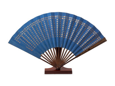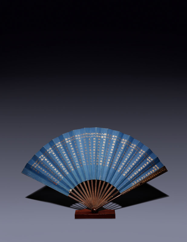 磁青紙泥金,紫檀骨摺扇