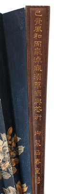 gilt ink on indigo-colored paper, zitan wood frames.