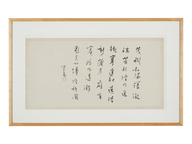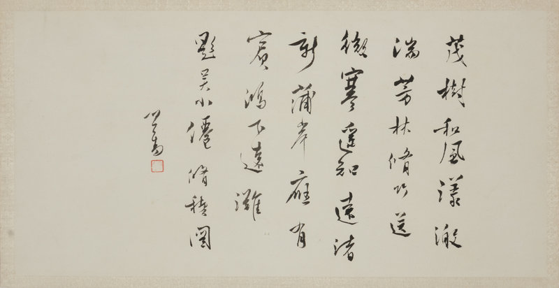 釋文:茂樹和風漾激湍,芳林修巧送微寒。遙知遠渚新蒲岸,應有賓鴻下遠灘。