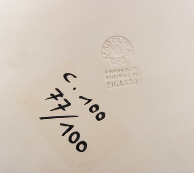 dated, stamped 'Madoura Plein Feu' and 'Empreinte Originale de Picasso,' numbered 77/100
