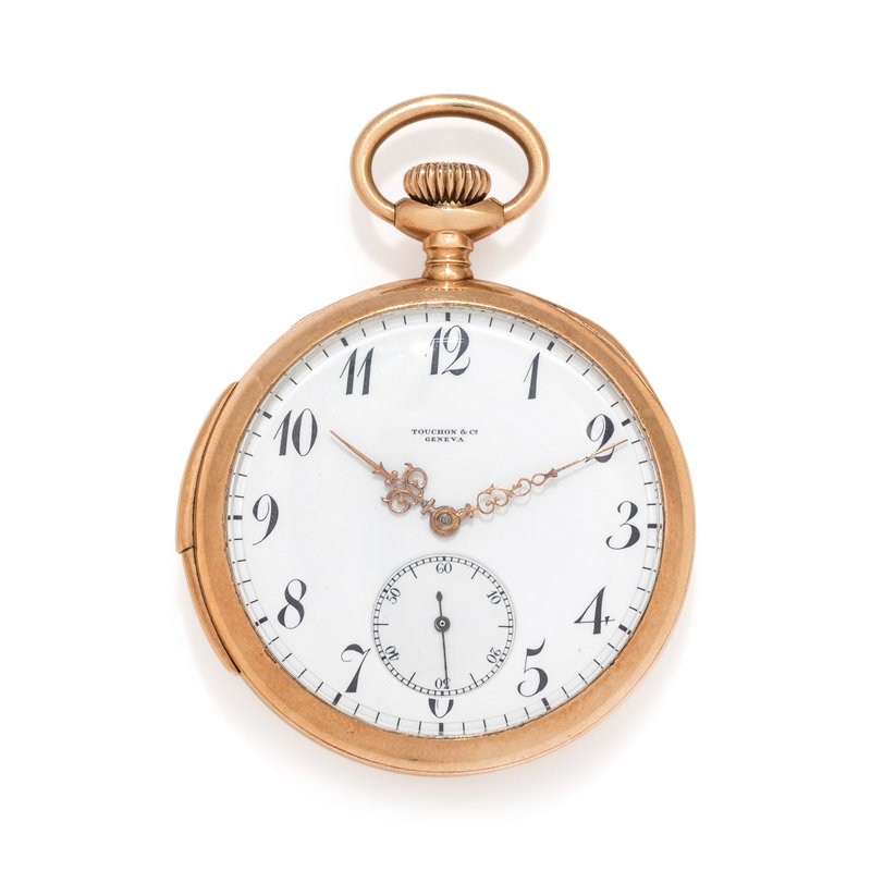 TOUCHON & CO., 14K YELLOW GOLD MINUTE REPEATER OPEN FACE POCKET WATCH