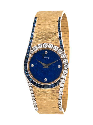 PIAGET, 18K YELLOW GOLD, LAPIS LAZULI, DIAMOND AND SAPPHIRE WRISTWATCH
