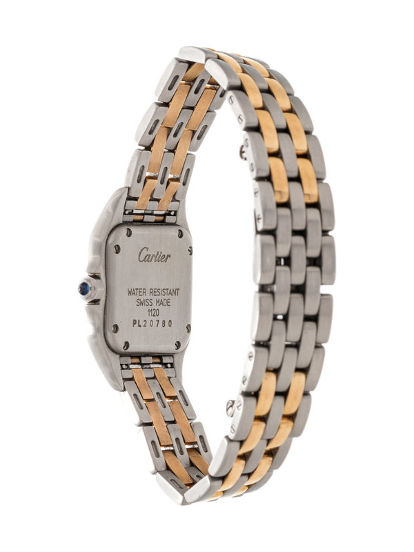 Case back stamp: Cartier WATER RESISTANT SWISS MADE 1120 PL20780.