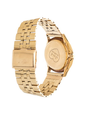 33.00 mm case diameter, matte silvered dial, applied gold baton numerals, Cal. 23-300 18 jewel manual wind movement adjusted to heat, cold, isochronism and five positions signed PATEK, PHILIPPE & Co, personalized engraving on case back, 14 karat flexible link bracelet, deployant clasp.