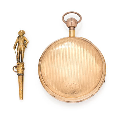 Accompanied by a yellow gold watching winding key in the figure of General Lafayette.