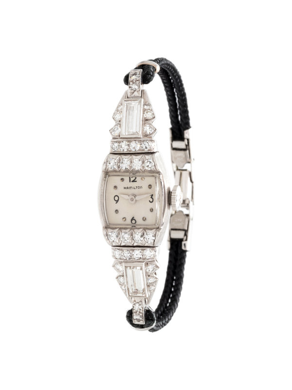 HAMILTON, PLATINUM AND DIAMOND WRISTWATCH