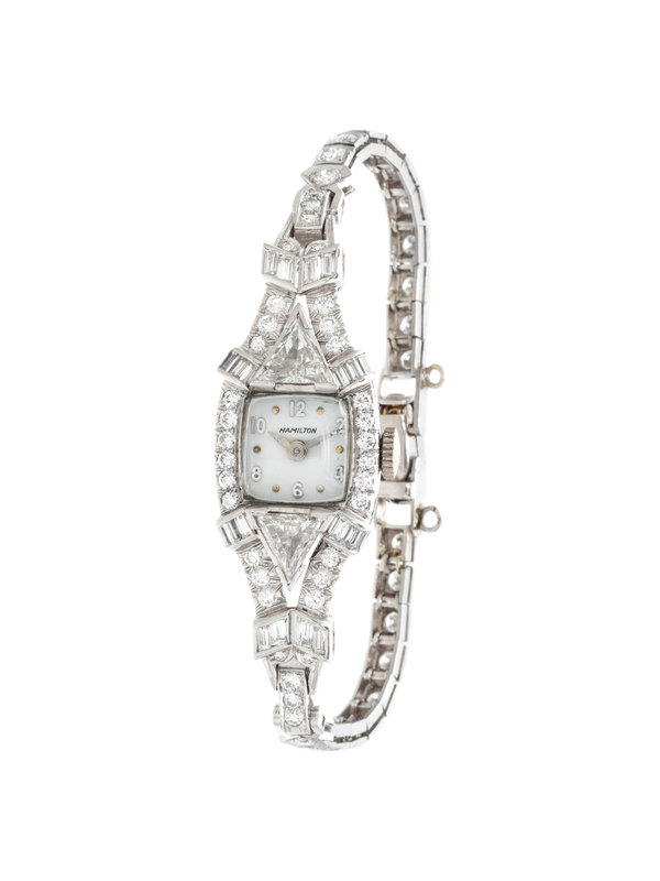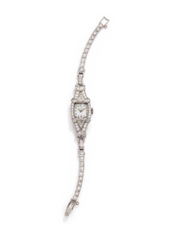HAMILTON, PLATINUM AND DIAMOND WRISTWATCH