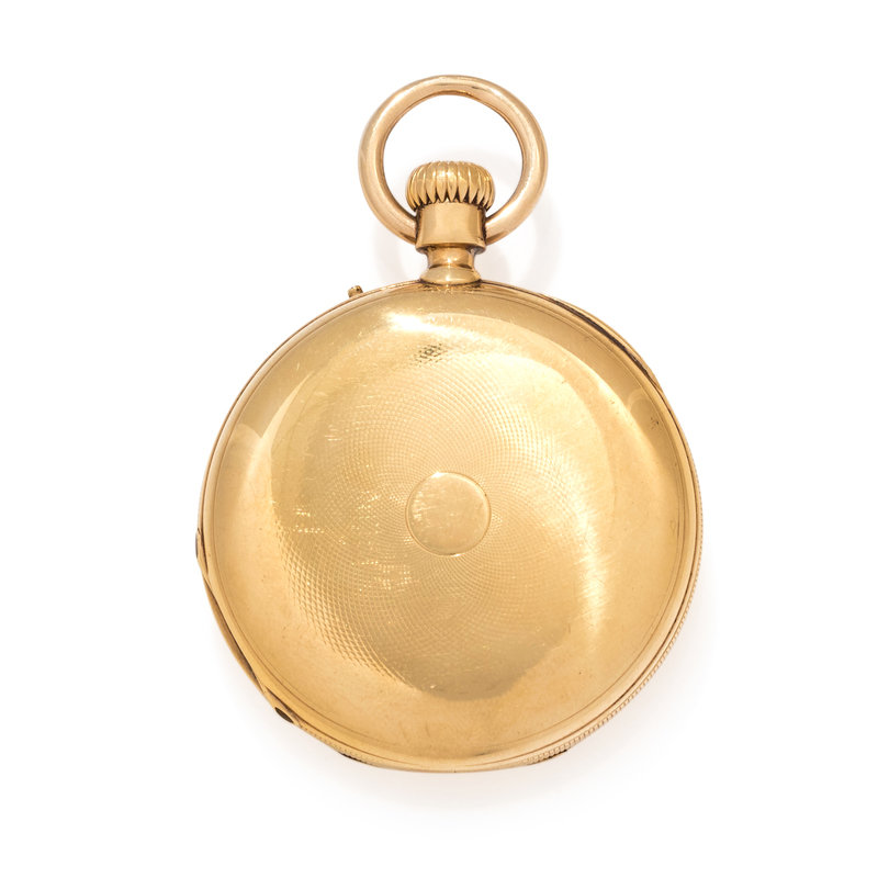 ROSSEL & FILS, D.F. BOUTTE & CO. 18K YELLOW GOLD AND ENAMEL DEMI-HUNTER POCKET WATCH