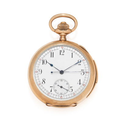 14K YELLOW GOLD MINUTE REPEATER OPEN FACE POCKET WATCH