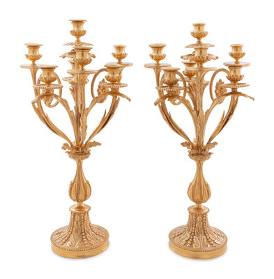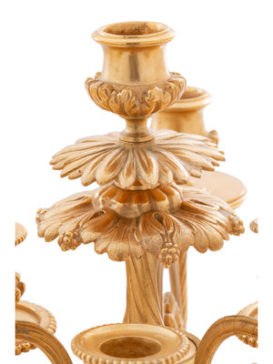 comprising a pair of seven-light candelabra and a cut glass center bowl.