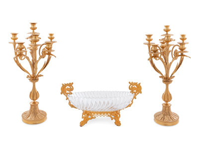 A Louis XV Style Gilt Bronze and Glass Table Garniture