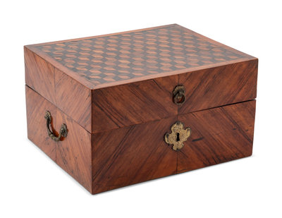 Height of parquetry case 6 1/2 x width 11 5/8 x depth 9 1/2 inches.