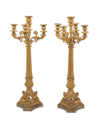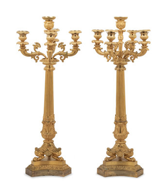 A Pair of Louis Philippe Gilt Bronze Five-Light Candelabra