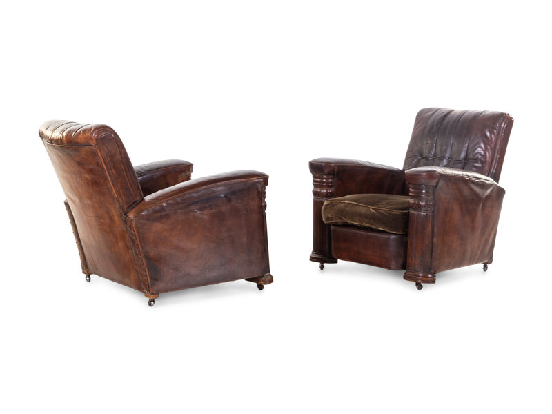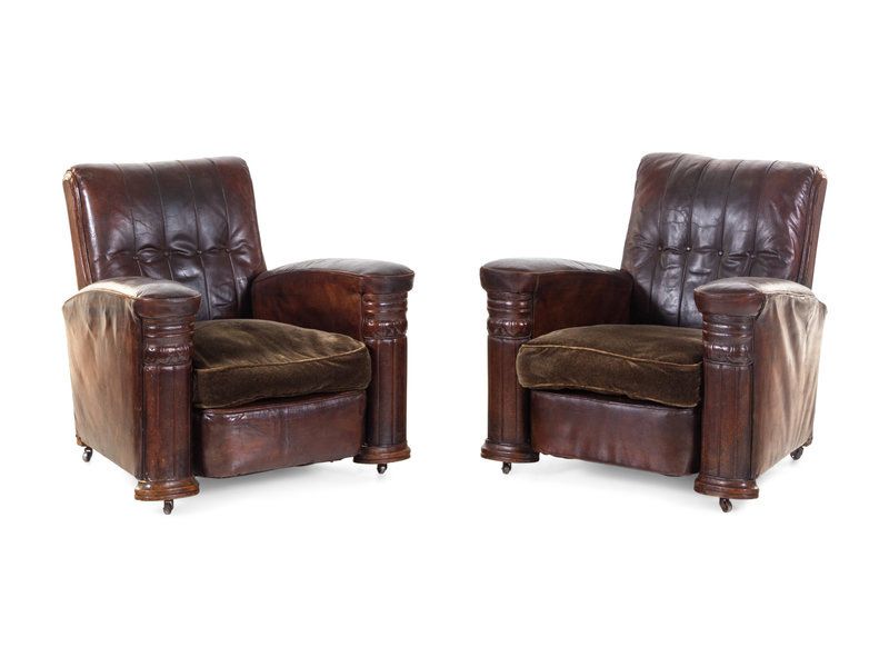 A Pair of French Leather and Mohair Upholstered Club Chairs