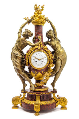 A French Gilt and Patinated Bronze Figural Mantel Clock