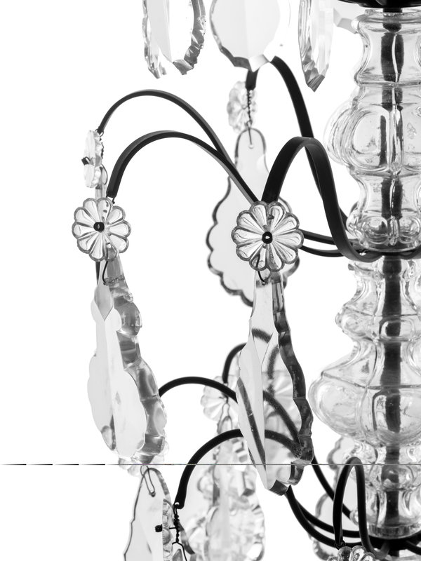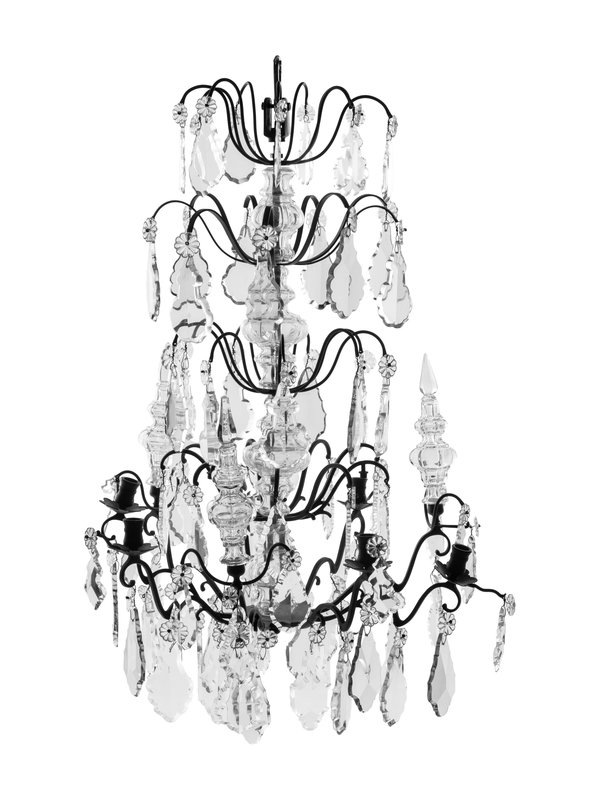 A French or Italian Wrought Iron and Cut Glass Six-Light Chandelier