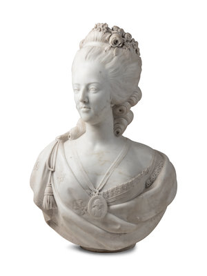An Italian Carved Marble Bust of Marie Antoinette