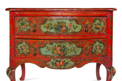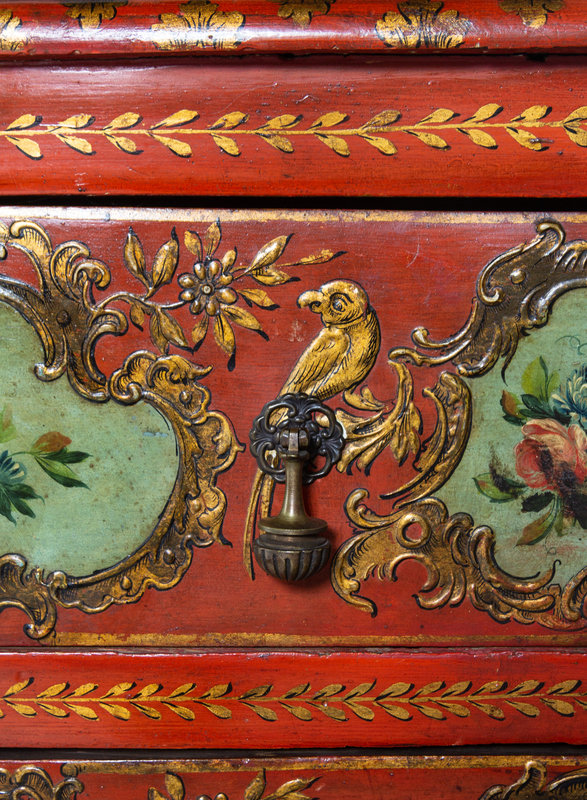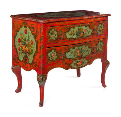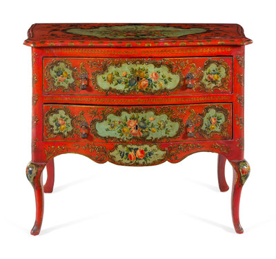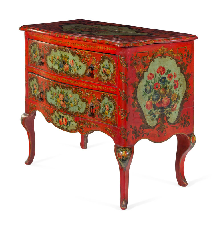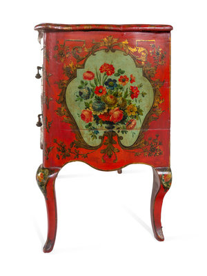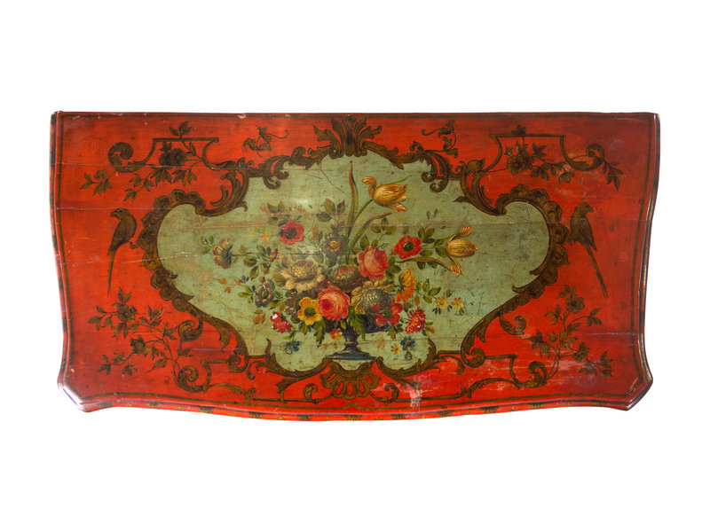A Venetian Parcel Gilt and Polychrome Decorated Commode