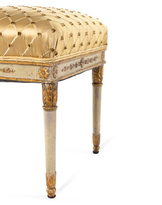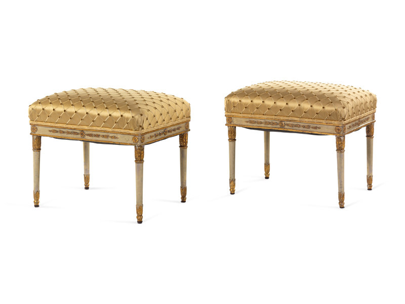 A Pair of Italian White-Painted and Parcel Gilt Carved Benches