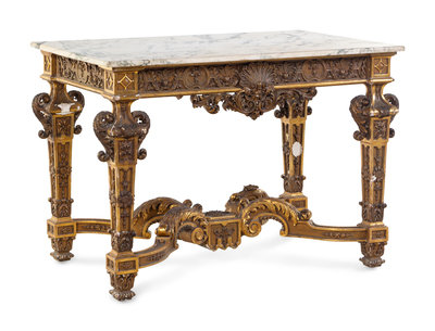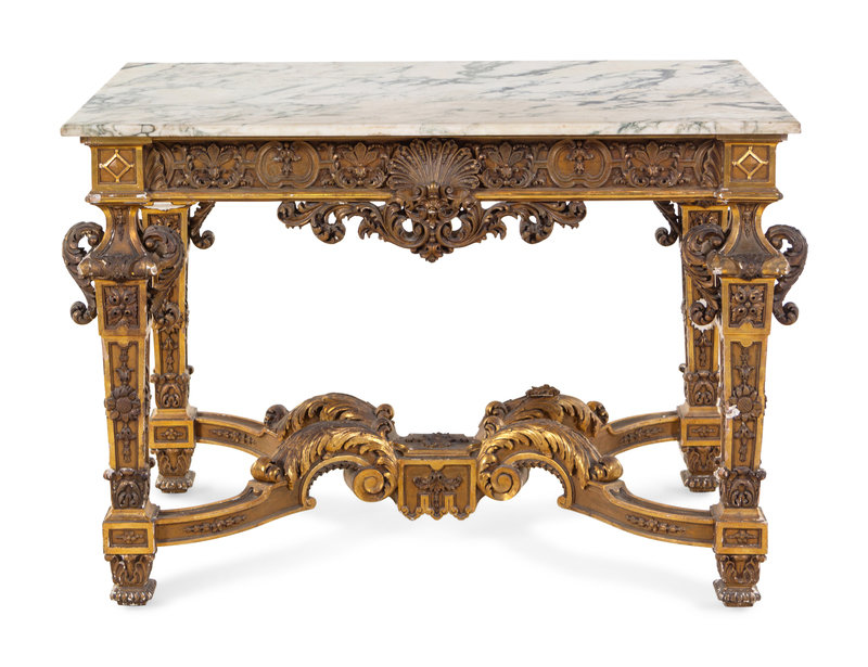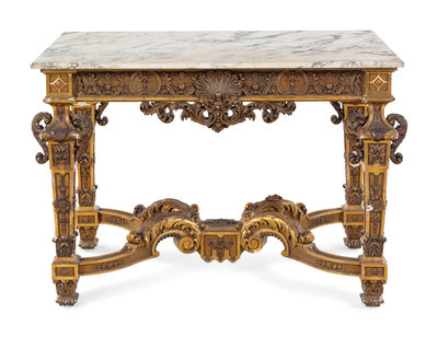 An Italian Carved Giltwood Marble-Top Center Table