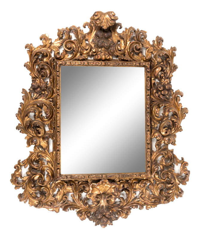 A Florentine Rococo Revival Carved Giltwood Overmantel Mirror
