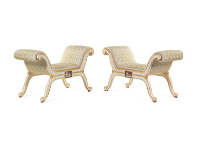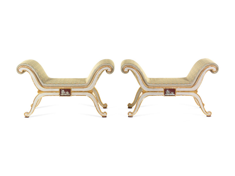 A Pair of Russian Parcel Gilt and White-Painted Window Seats