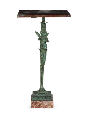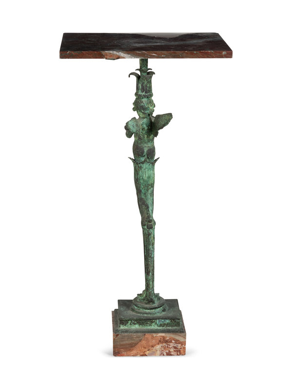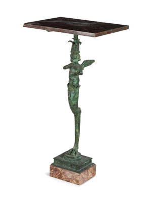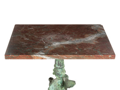 An Italian Patinated Bronze Marble-Top Pedestal Table Cast by the Chiurazzi Foundry