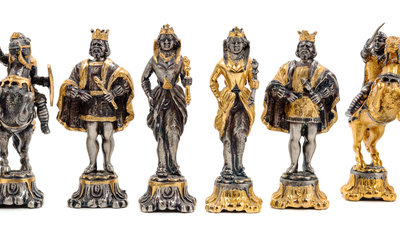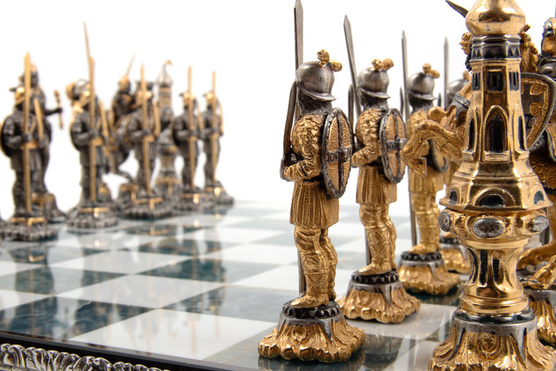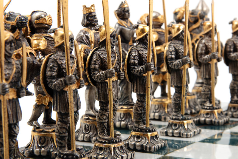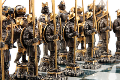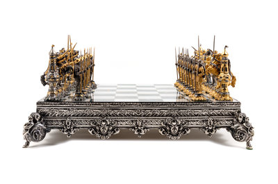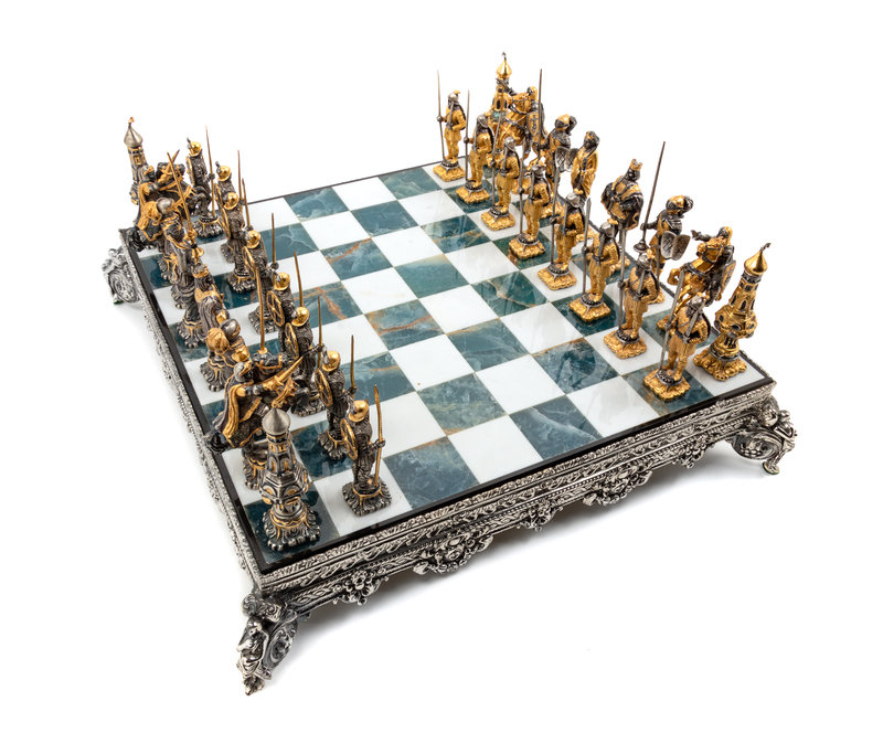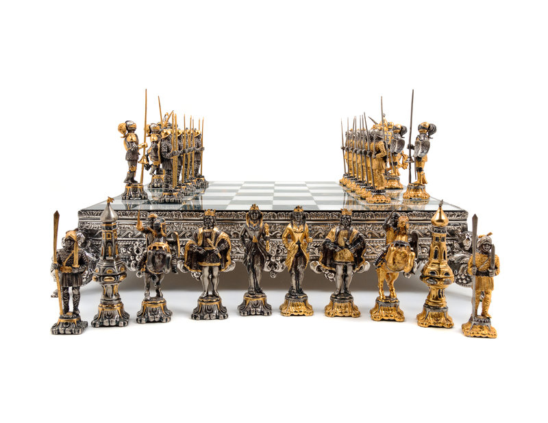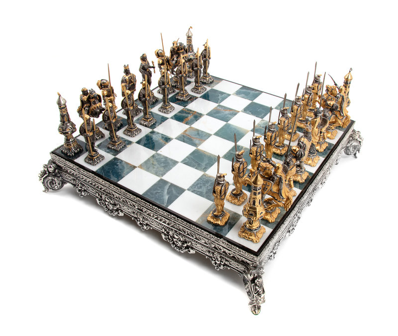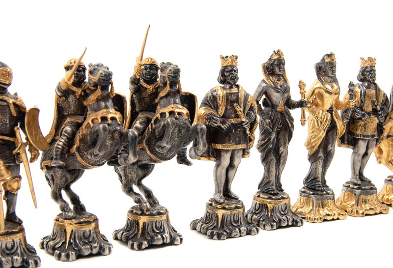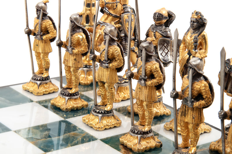 A Giuseppe Vasari Gilt and Silvered Bronze Medieval Chess Set
