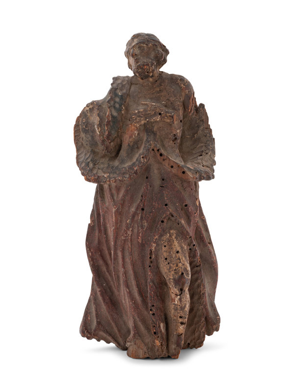 A Continental Carved and Polychromed Wood Figure of Saint Peter