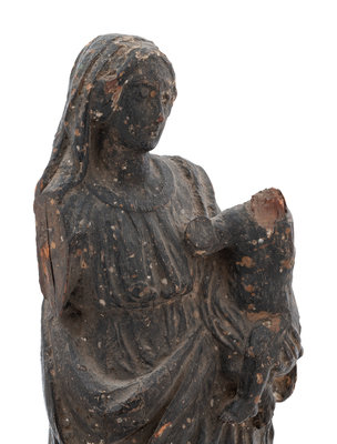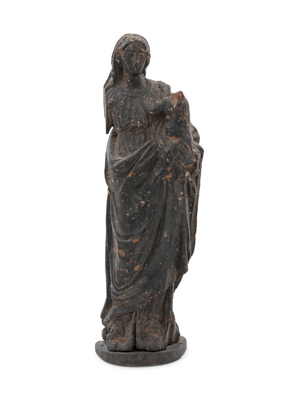A Continental Carved Wood Figural Group Depicting the Madonna and Child